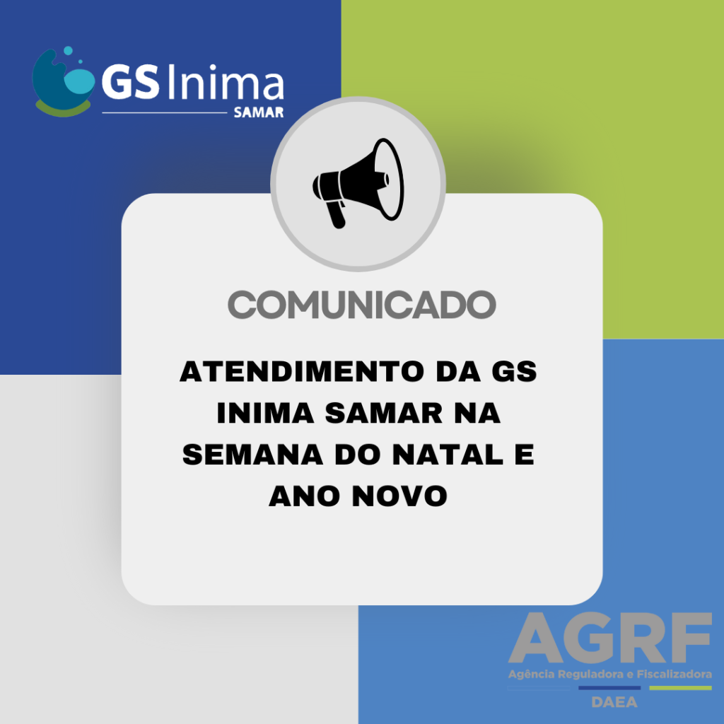 Comunicado: Atendimento da GS Inima Samar semana Natal e Ano Novo